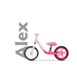 El manillar del modelo Alex está equipado con un limitador de ángulo de dirección que evita que el niño vuelque mientras conduce. Las almohadillas antideslizantes en el manillar hacen que la conducción sea más cómoda, y un protector especial en la parte media del manillar protege adecuadamente al pequeño ciclista en caso de que golpee con su cuerpo.