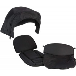 Tanto a cadeira como o capazo têm tecidos hipoalergênicos e impermeáveis.