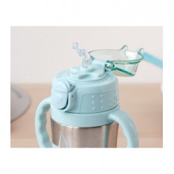 Sua abertura é ativada com um simples mecanismo de botão e abre o tapão que o mantém limpo e torna mais seguro para quando seu bebê bebe.