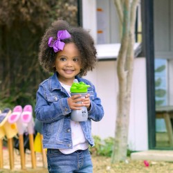 O cabo superior da garrafa facilita o agarre do copo e torna mais fácil de manusear para crianças mais pequenas.